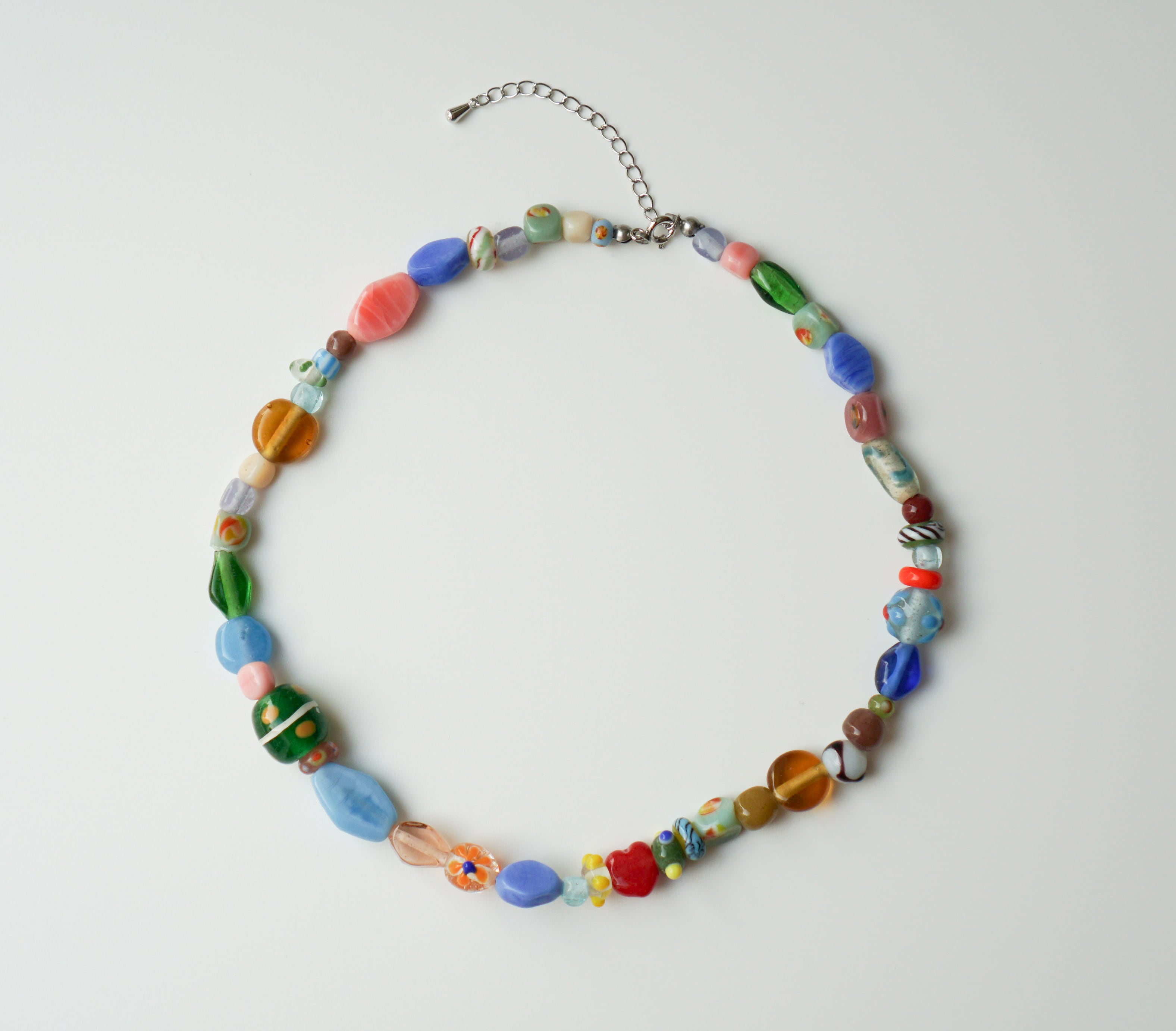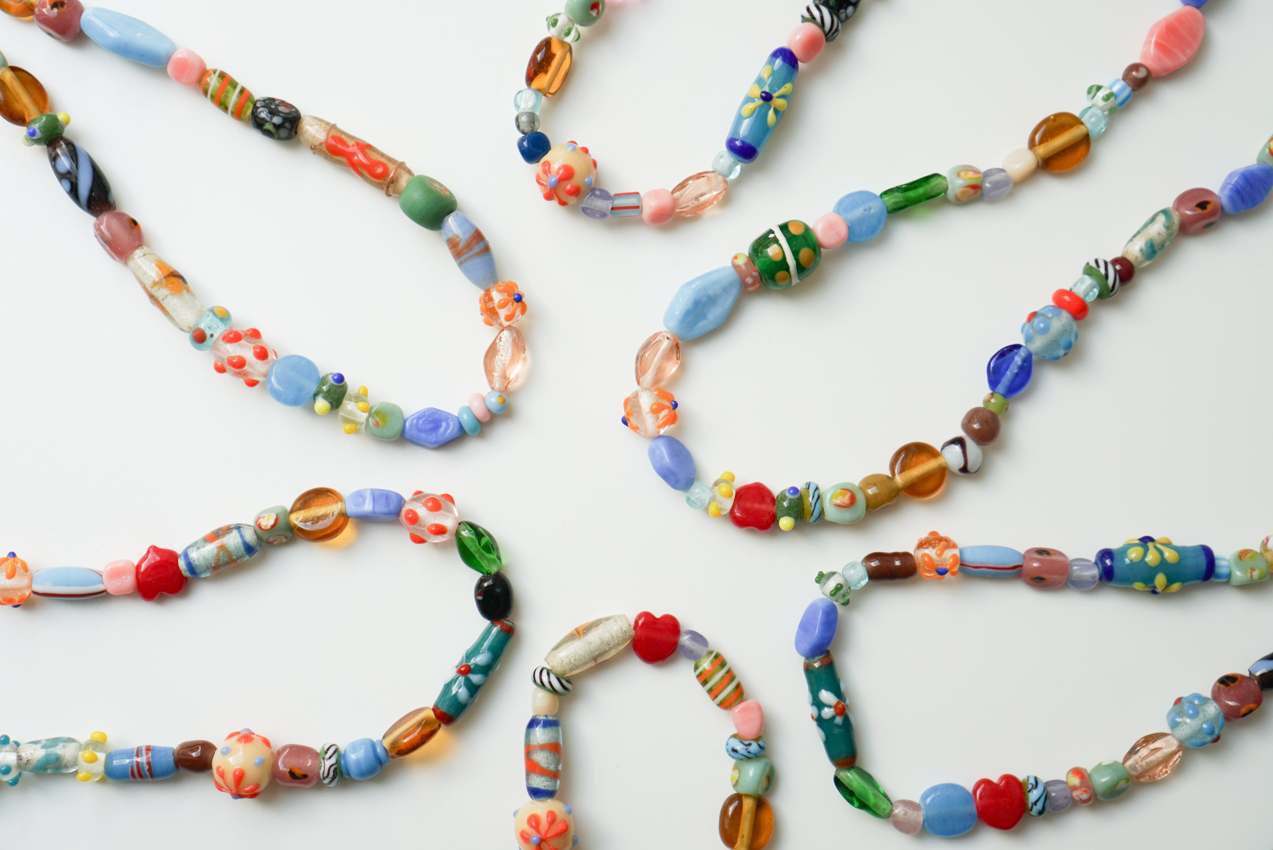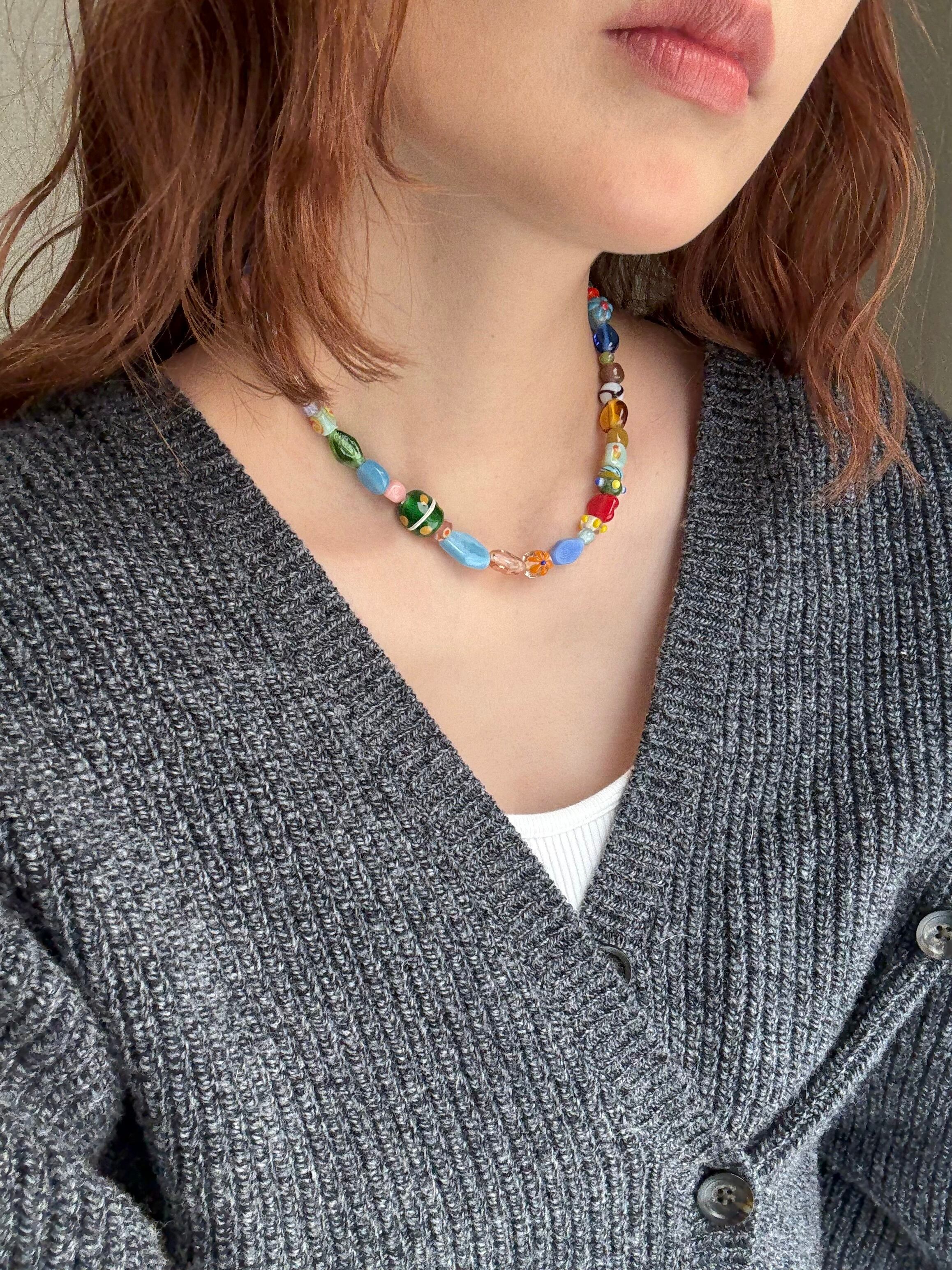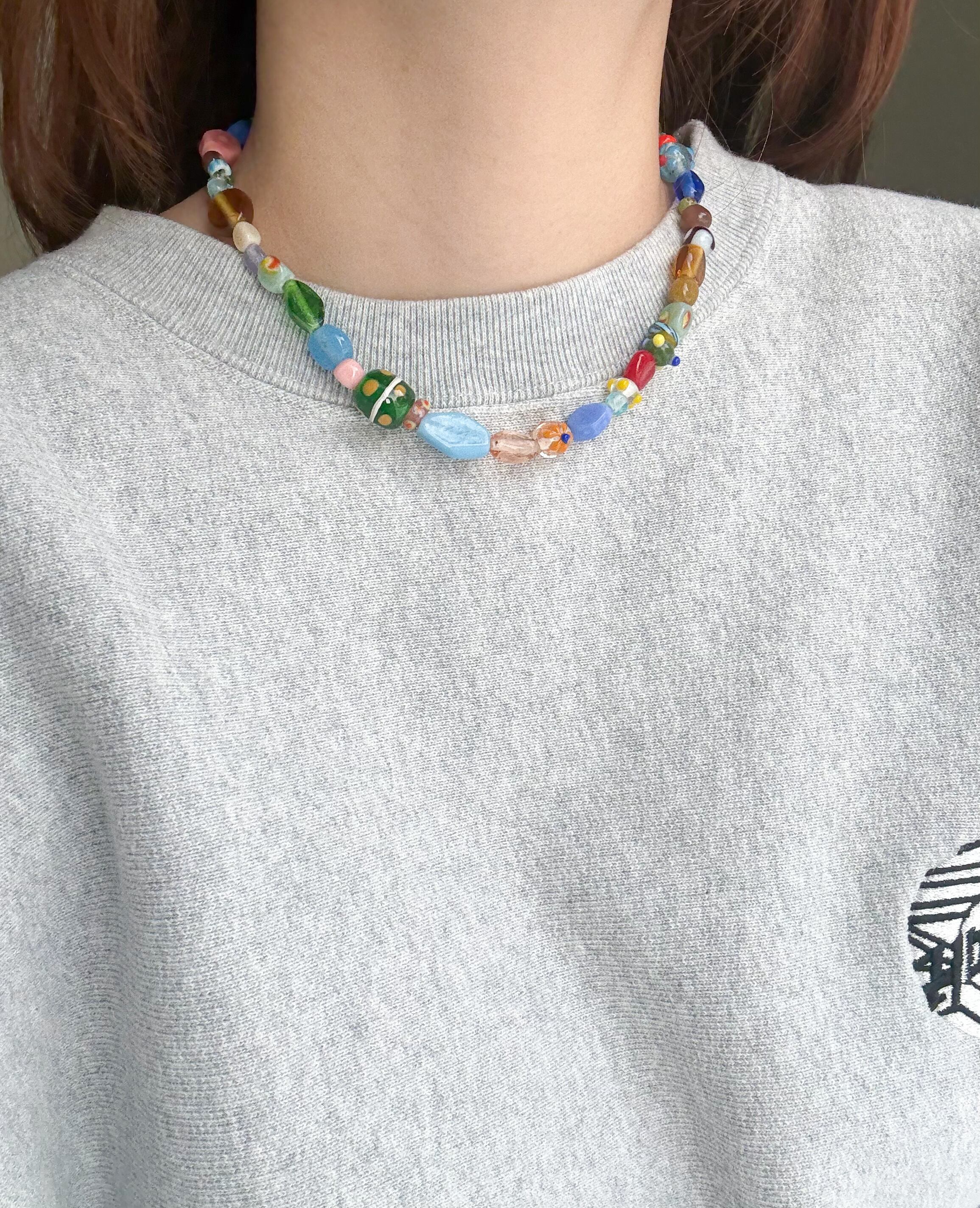 ガラスビーズやトンボ玉をたっぷり使用したカラフルで可愛い唯一無二なネックレスです♡